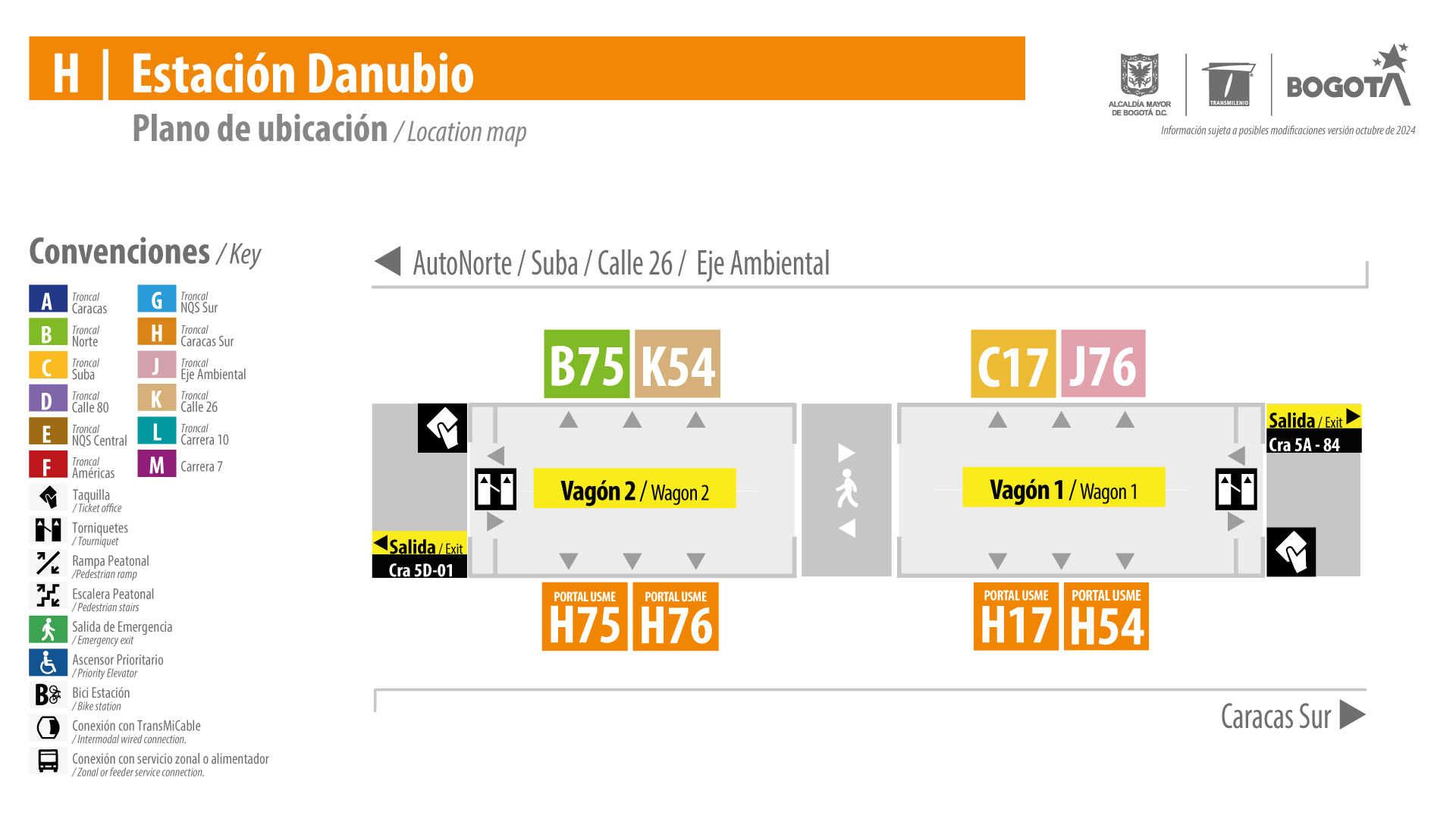 La estación Danubio del sistema Transmilenio se encuentra ubicada en la Avenida Caracas entre la calle 55 y la calle 56 sur en la ciudad de Bogotá.