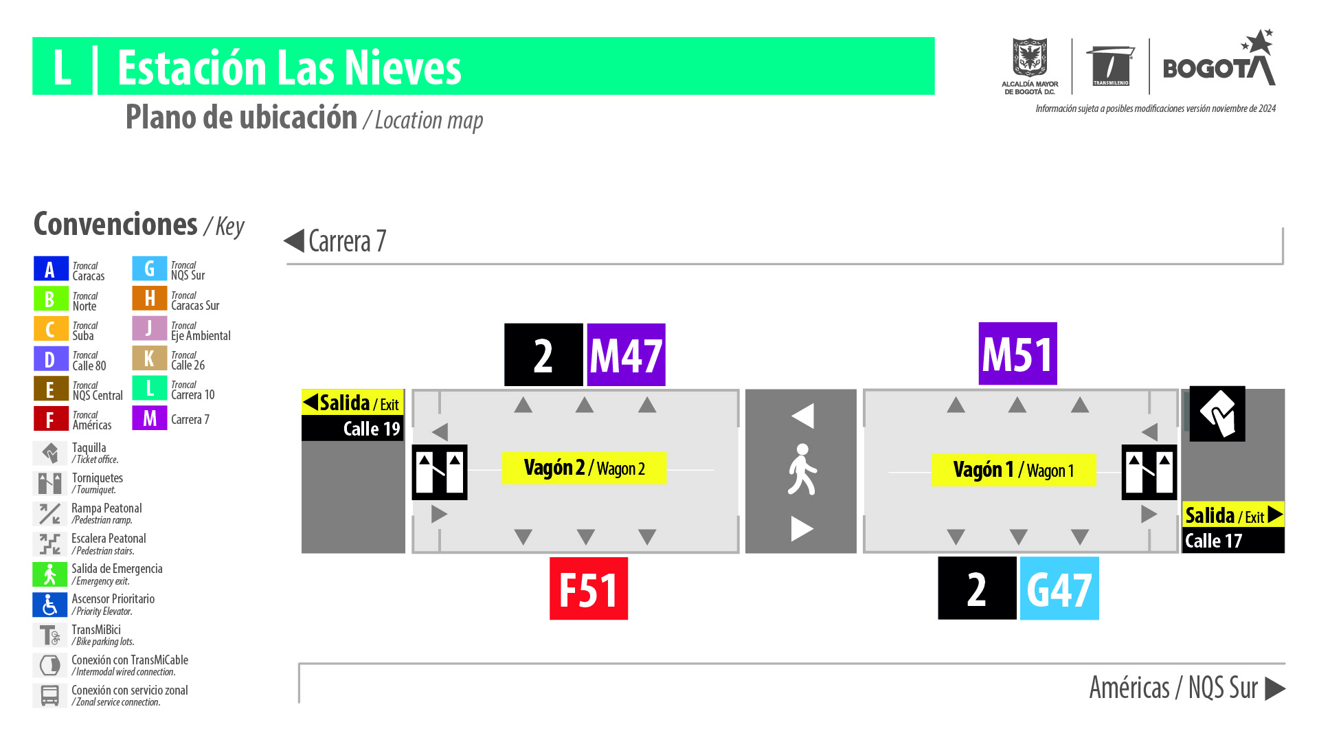 Mapa de la Estación Las Nieves Transmilenio