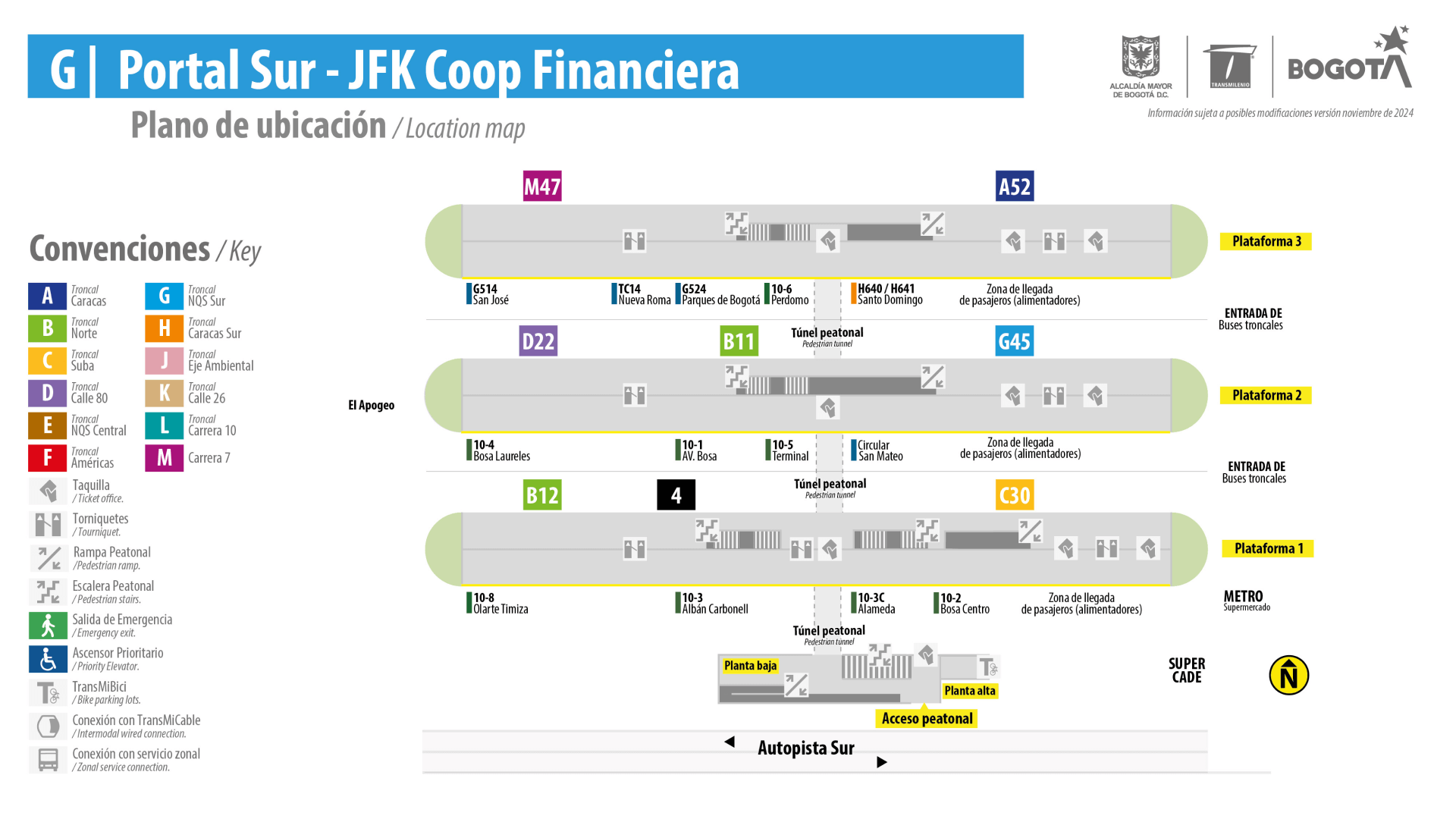 Mapa de la Estación Portal Sur Transmilenio